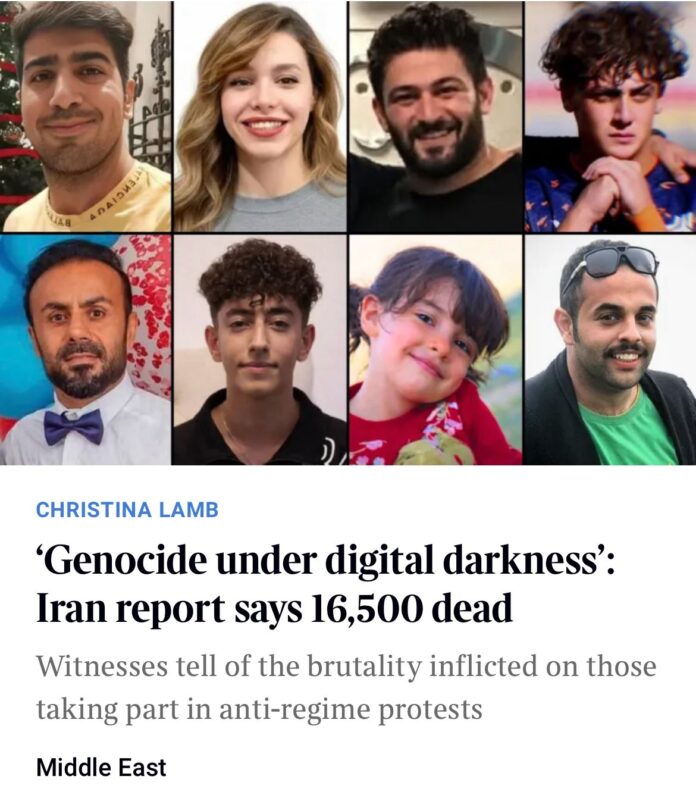 ڕۆژنامەی ساندەی تایمز لە ڕاپۆرتێکدا ڕایگەیاند کە لە ماوەی ئەو ئاخێزەی ڕۆژانی ڕابردووی خەڵکی ئێران، لانیکەم ١٦،٥٠٠ بۆ ١٨ هەزار خۆپیشاندەر گیانیان لەدەستداوە و ٣٣٠ بۆ ٣٦٠ هەزار کەسیش بریندار بوون.